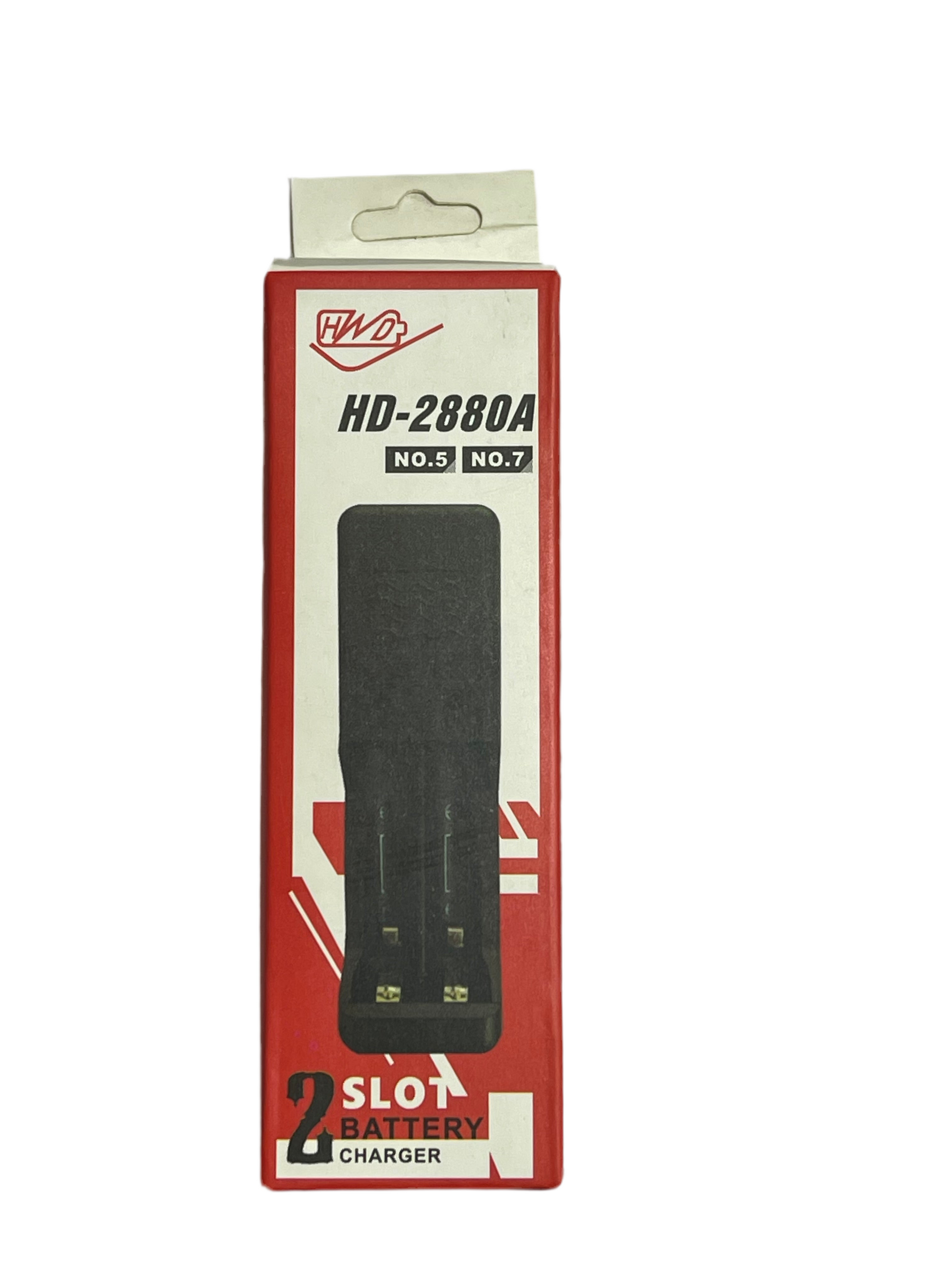 The HWD HD-2880A is a straightforward and essential accessory for every home. Designed for simplicity and convenience, this 2-slot charger handles the most common rechargeable battery sizes—AA and AAA—used in remote controls, wireless mice, children's toys, clocks, and more.