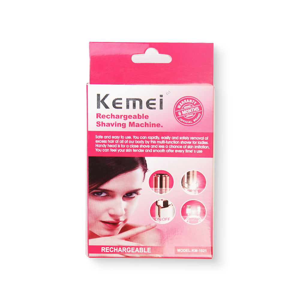 Kemei Rechargeable Shaving Machine KM-1021 for women's body care. Portable, rechargeable, and ergonomic design for smooth shaving."