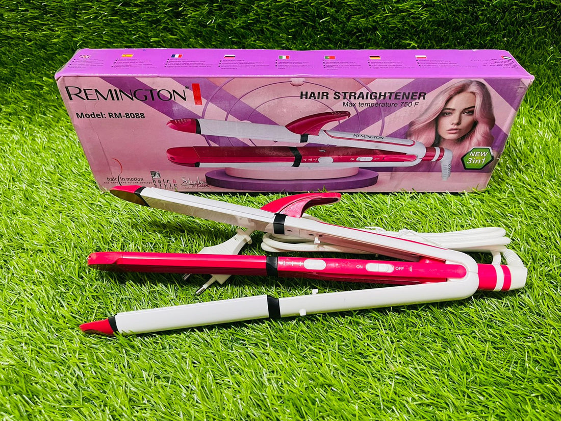 "REMINGTON Hair Straightener RM-8088 for salon-quality straight hair. Advanced ceramic plates, multiple heat settings, and fast heat-up."